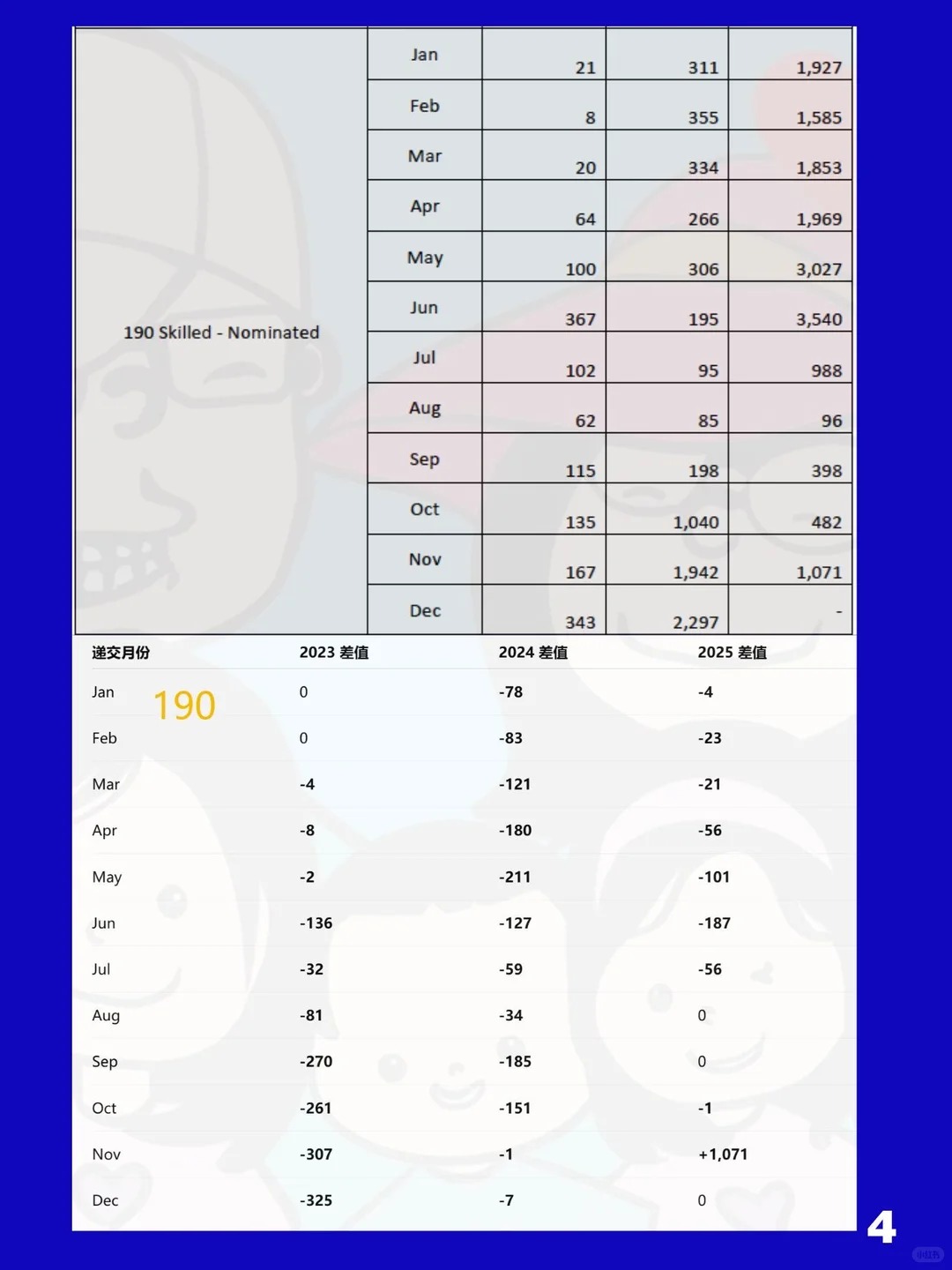 491也是分散式审理,主要在审理23-24财年递交的申请,23年7月底递交的减少了581个,23-24财年每月待审的数稍微比190多一些,从200多个到800多个不等。但491 在24-25财年每月的积压比190更少