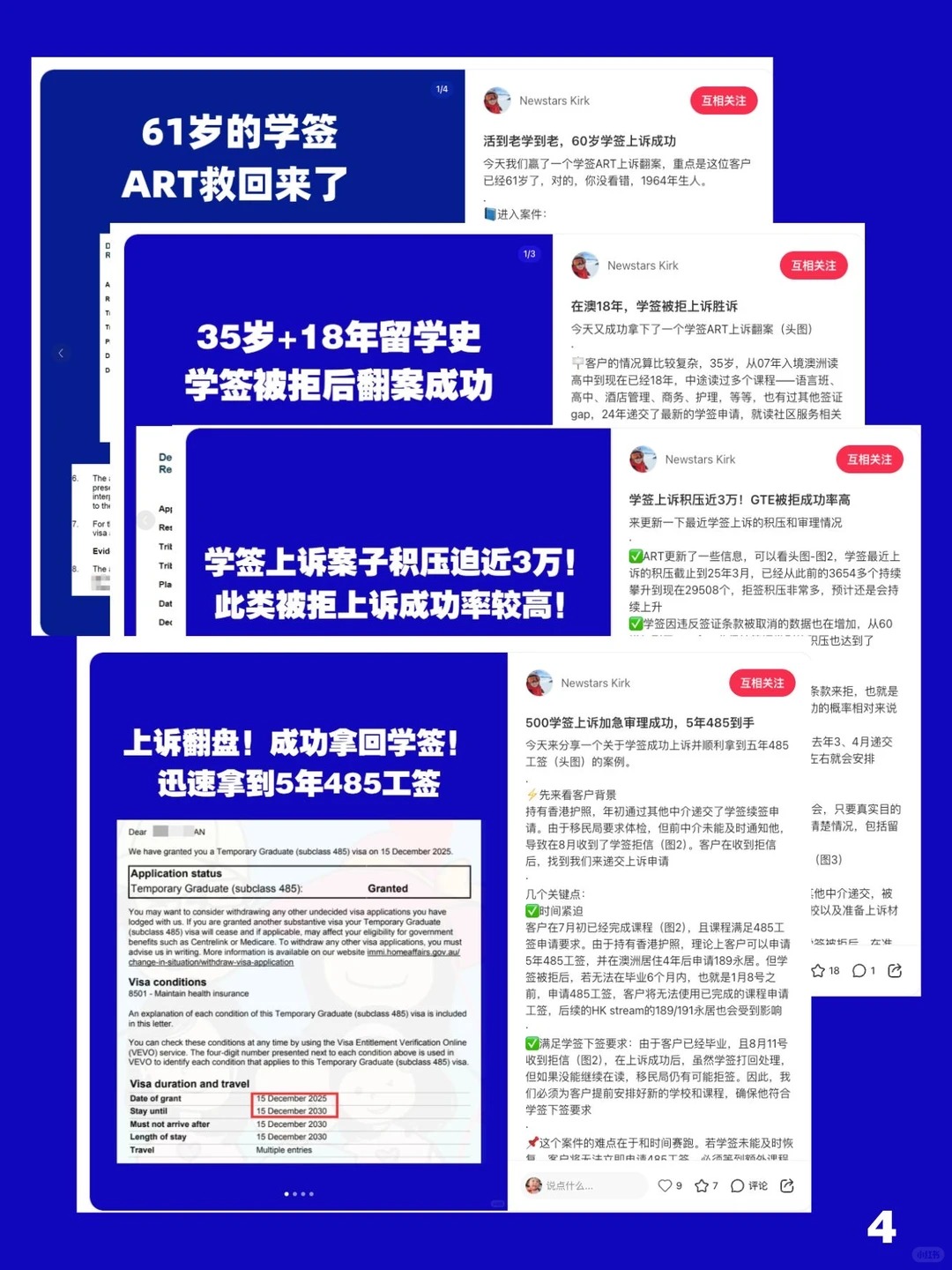 总而言之,在学签临签上诉的申请人需要准备更充足的准备来递交材料。之前我们也有很多学签上诉成功翻案拿回签证的案例(图4),也希望给大家更多的一些参考吧!