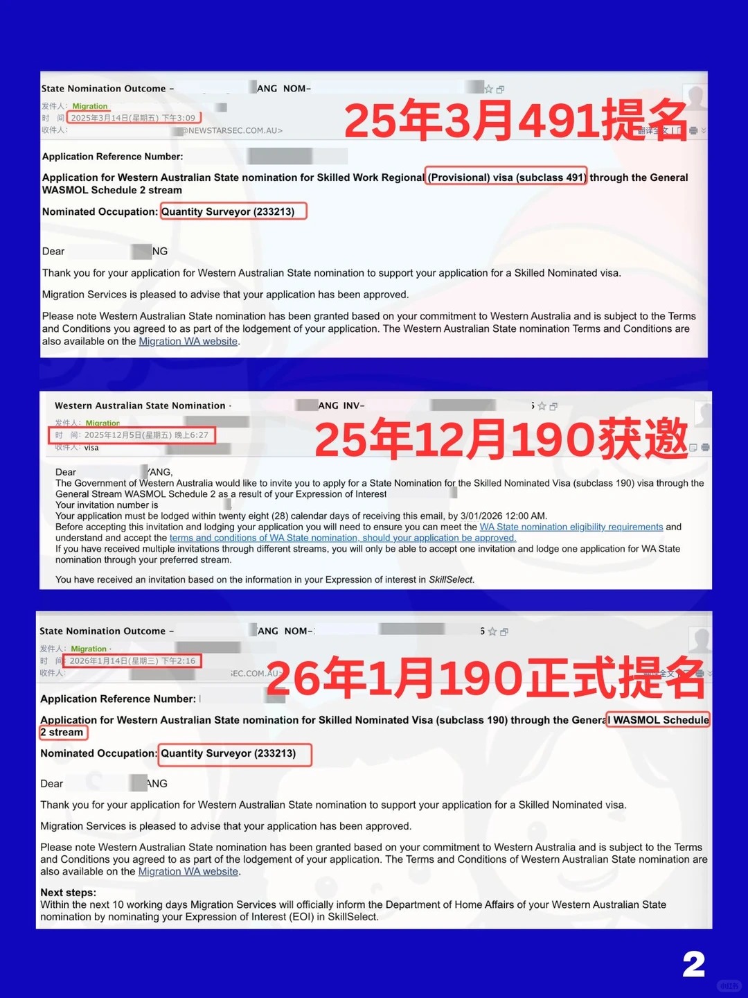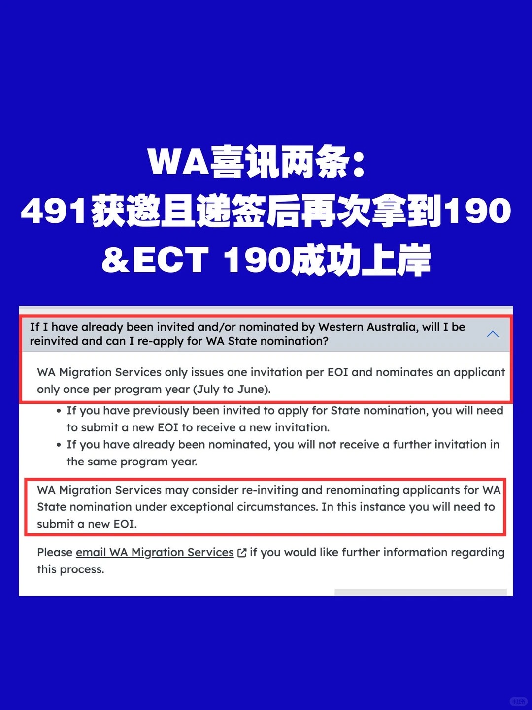 1、一个是491获邀已经递签,但满足WA190要求后,又重新喜提190正式邀请(图2)