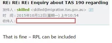 其实MATT同学本意是问一年制的Graduate Diploma里有免课,塔州移民局认不认?而塔州移民局超迅速的非常直接的回复是认RPL。Matt已修完会计课程,这可能也是塔州移民局大慈大悲认为没必要再继续波奔读书而直接给邀请的缘故之一。