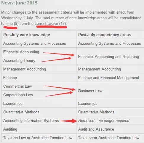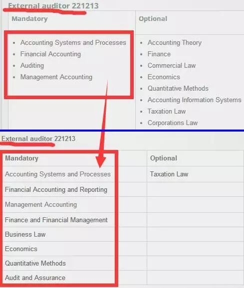 Financial accounting和 Accounting Theory 是旧职业评估的必修课,因此学生肯定都修过。最重要的一个印象就是之前选修的Commercial Law和Corporation Law全部变成必修的课程,往往很多同学只选了一门课,这样在新的政策下就无法通过职业评估。另外,以前的Finance,Economics和Quantitative Methods也从选修全都变成必修。在新的政策之下,读Audit and Assurance和Taxation Law这两门课变成了鸡肋,因为必修的课程就已经可以通过职业评估了。