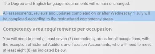 在6月份递交的职业评估申请,CPA将会争取在71之前完成所有评估,仍然按照旧的标准来。但是如果是71后才完成评估,或者递交的review(485职业评估加上PY或者雅思4个7换Full skill assessment)和updates则将会采用新的标准。在71之前拿到的职业评估则不会受到新政的任何影响。