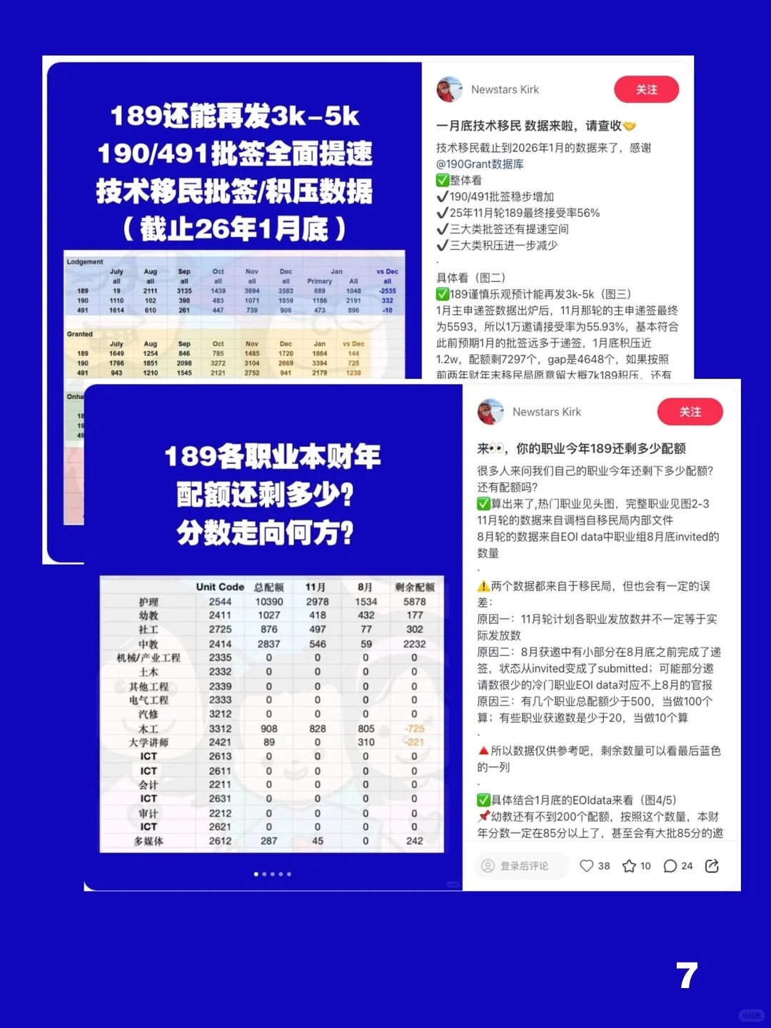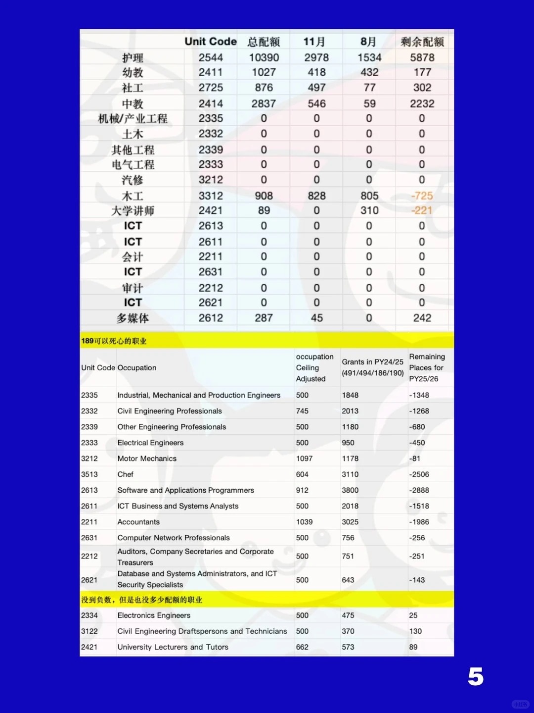 关于189本财年剩余配额,我之前有笔记分析过可以参考(图5)本财年乐观估计可再发3k-5k的189邀请。结合专业配额上限(图7),我们逐一来看