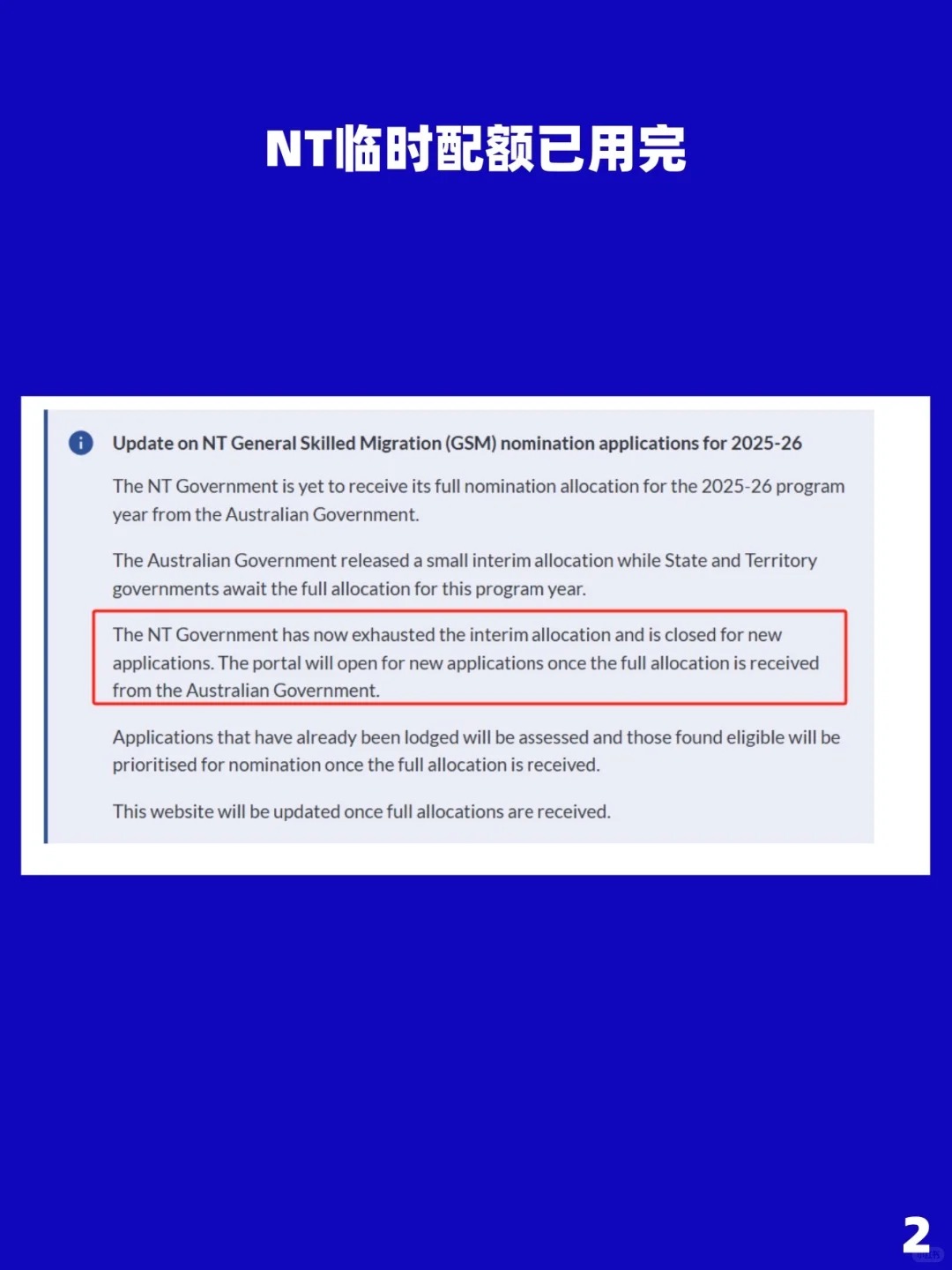 NSW临时配额200+180个,现在剩下201个,主要是给上财年的获邀填坑。