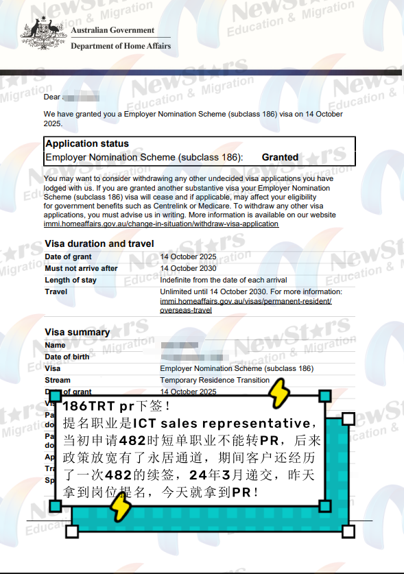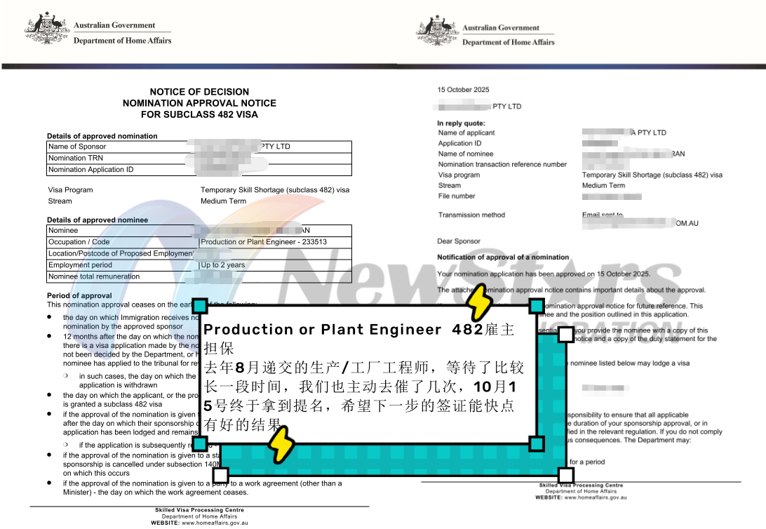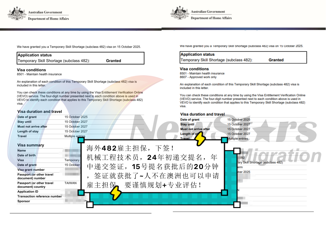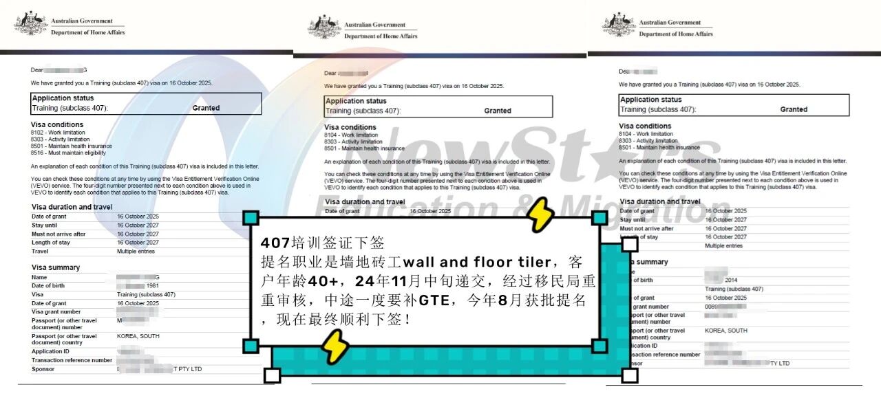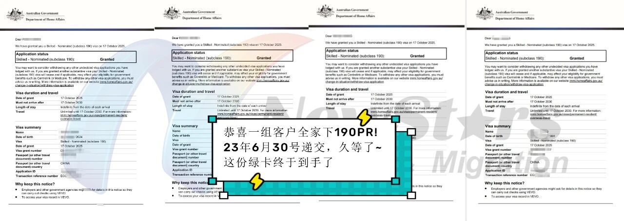 新州190下周发邀请!机械/生产工程师、ICT销售代表、墙地砖工的工作签证成功批复!一家四口190下签!