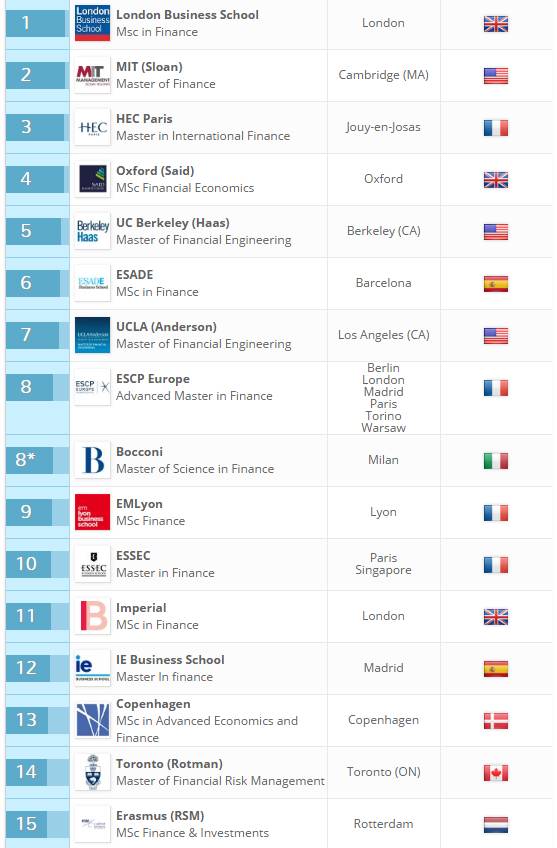 优秀的金融专业分布在全球不同地区的学校,以下是金融专业的世界前十五