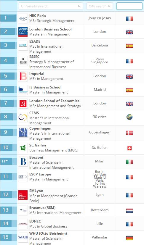 中国上海交通大学安泰经济管理学院实力强劲,他们的科学和工程管理硕士名列全球第29位。香港科技大学商学院的国际管理硕士也名列第49位。