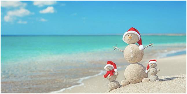 想象中带着圣诞帽的雪人,也变成了带着墨镜的沙滩泥人