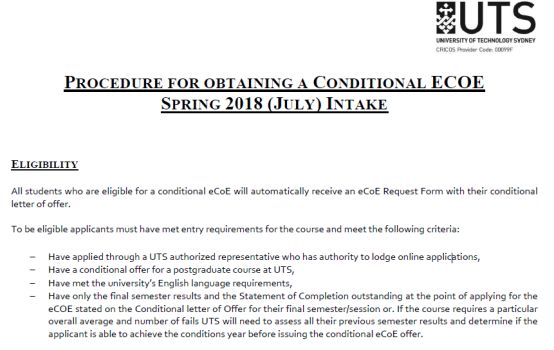 特别提醒,Conditional ECOE不同于最后的COE,即使拿到了Conditional ECOE,在收到full offer前是不得入境的,这个请大家务必知晓,以免带来严重后果。