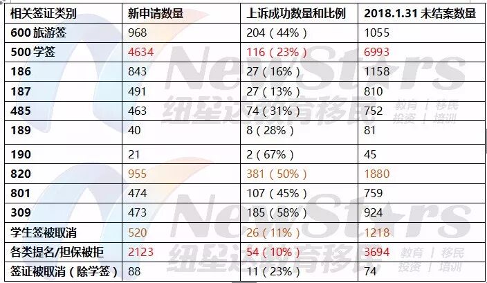 186签证的上诉这段时间也多了843个,187签证的多了463个,前者的成功率是16%后者是13%,偏低。