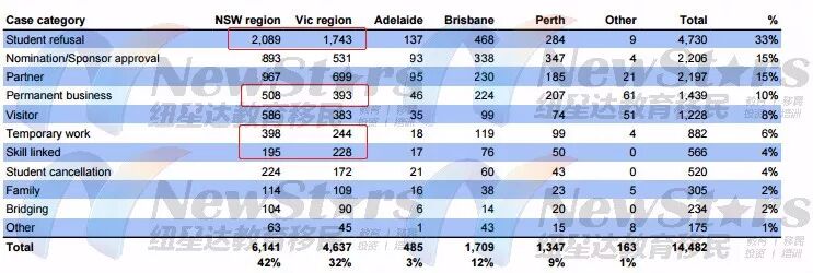 其次多的是提名/担保被拒,有2123个,3694个正在处理中,上诉成功率只有10%。之前我们的移民团队在政府宣讲会上得知现在186提名被拒的比例是30%,187是50%,因为内政部在严打虚假申请!