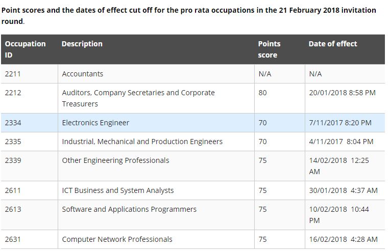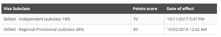 The highest ranked clients by points score are invited to apply for the relevant visa. For clients who have equal points scores, the time at which they reached their points score for that subclass (referred to as the date of effect) determines their order of invitation. Expressions of Interest with earlier dates of effect are invited before later dates.