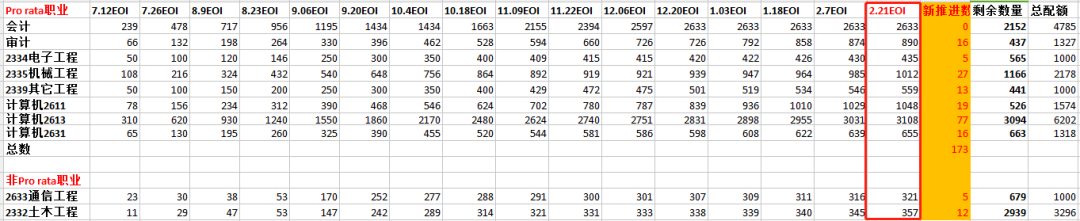 2335本轮继续70分获邀,邀请了27个,是工程类三个pro rata专业中最多的;