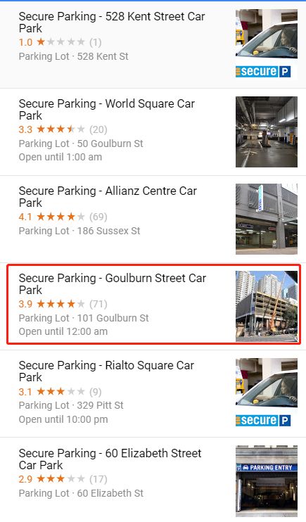 开车过来的小伙伴可以参考以下停车场,最近Goulburn Street的Secure Parking走过来只需要1分钟
