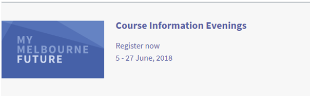 墨尔本大学将于6月5日至6月27日针对不同专业举行课程介绍之夜,学生将有机会和墨大的老师进行面对面的沟通和交流,并给学生提供选课,实习,奖学金等一系列咨询,以及未来的职业发展规划,有兴趣的同学赶紧到官网注册报名参加哦!