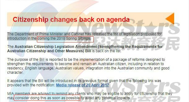 入籍要求修改已经有一段时间没有任何音讯了,MIA发来最新的消息称新版本的入籍修改法案很可能会在议会的spring sitting期间卷土重来,也就是8-12月这段时间↓↓↓