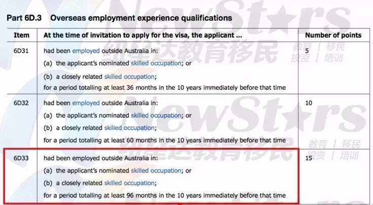 上图取自Migration Regulation Schedule 6D33,该部分确定海外工作经历打分的计算标准。