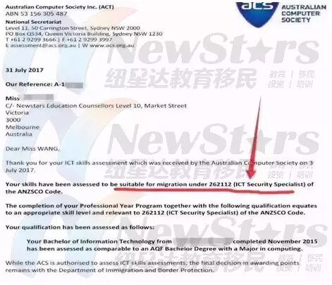 2017年7月3日递交,7月31日收到ACS职评通过函!
