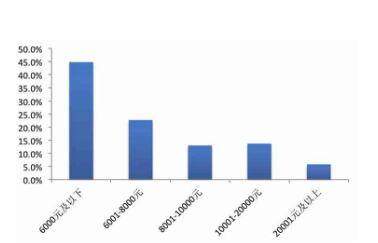 工资分布中,44.8%海归税后月薪都只在6000元以下,22.7%介于6001-8000元之间,8000-10000元占13%,月薪上万有13.7%,超过两万的,只剩可怜的5.8%。68.9%的人承认工资低于自身预期。