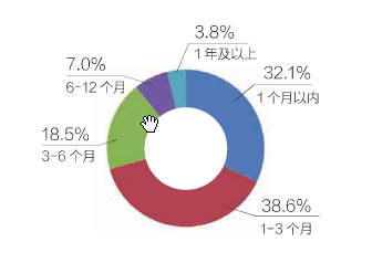 在1821份有效调查中,38.6%的海归花1-3个月找到回国第一份工作,89.2%在半年内找到工。