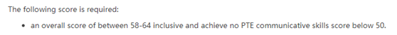 悉尼科技大学(University of Technology Sydney)本科、研究生PTE要求:58-64 (部分专业,如Arts、Design等有要求更高)