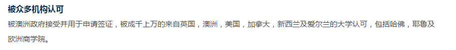 4、拿着PTE,直接读名校拿加分PTE被大部分澳洲学校承认,不仅可以用来轻松直升澳洲名校,还和雅思一样,毕业后PTE也可以用作澳洲技术移民加分项,顺便拿绿卡。