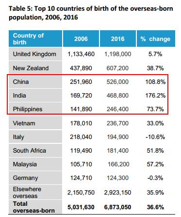 海外出生人口占总人口的28%,是人口超过1000万的OECD国家中最高的;亚洲移民增长非常强劲,2015-16年17%新移民来自中国大陆;外加每年19万的移民纳入量….