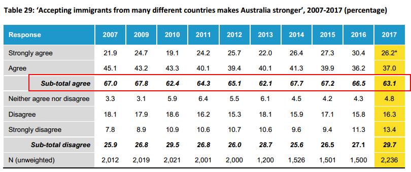 Social Cohesion受很多方面的因素影响,在澳洲这样的一个国家,对移民的态度肯定是最关键之一。