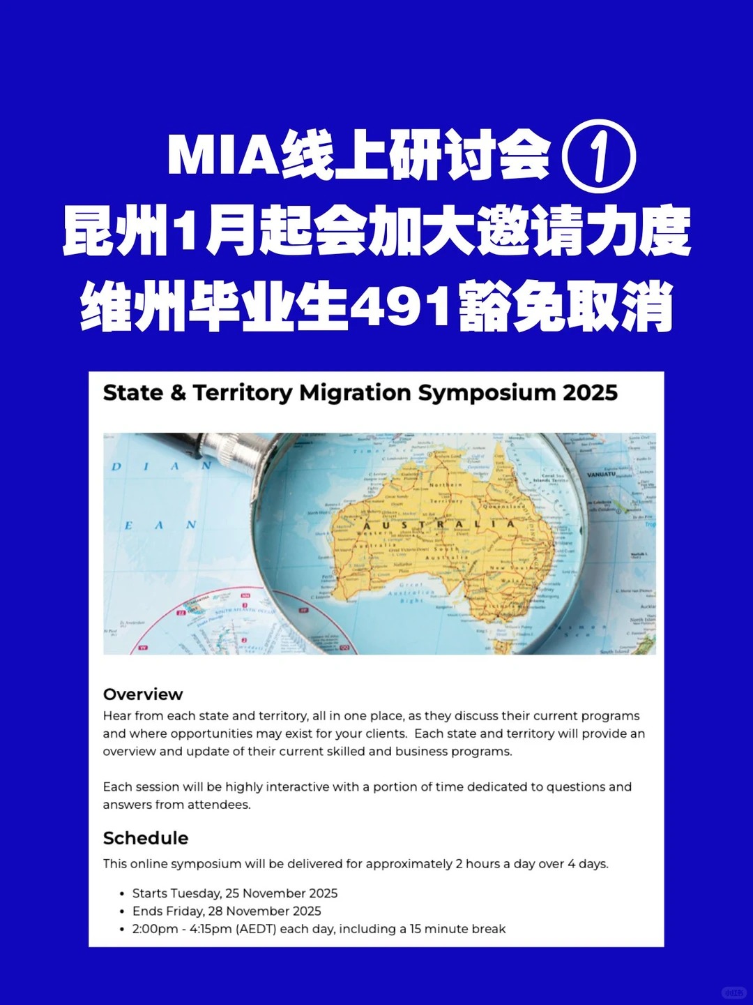 今天参加了MIA州担保线上研讨会第一场,一共连续4天,各州州官都会来聊聊各州的政策细节和邀请流程上一些提醒(头图)