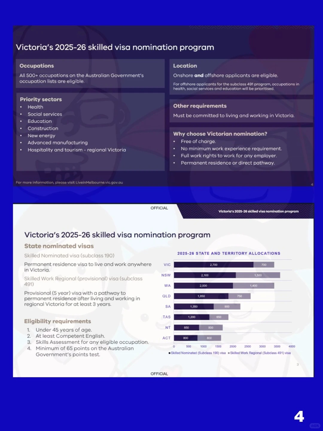 • 境内外一起竞争,维州没有区分本财年的190491要给境内或境外多少名额